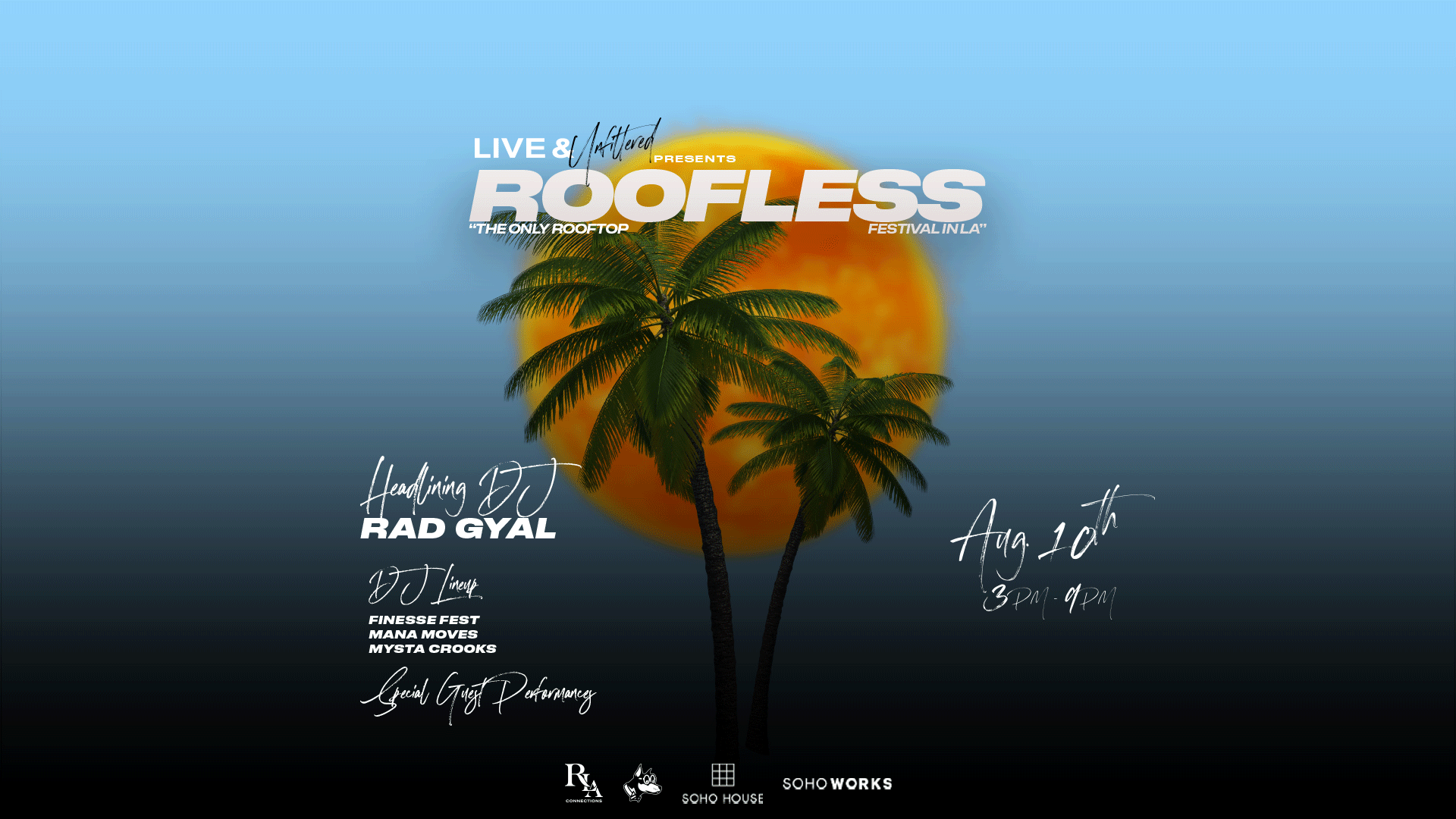 Join Us at Life & Unfiltered Roofless Powered by Goodfin! Get ready to celebrate the vibrant culture of DJs at our exclusive festival. This private event is your chance to immerse yourself in a day filled with live DJ performances, special guest appearances, photo ops, and endless entertainment. Indulge in delicious food, refreshing drinks, and exciting giveaways throughout the day.